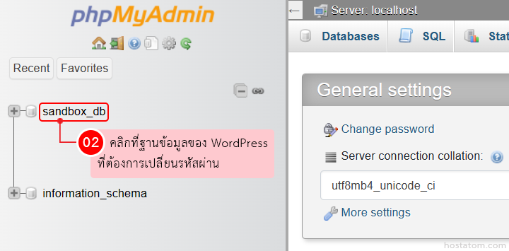 คลิกที่ฐานข้อมูลของ WordPress ที่จะเปลี่ยนรหัสผ่าน