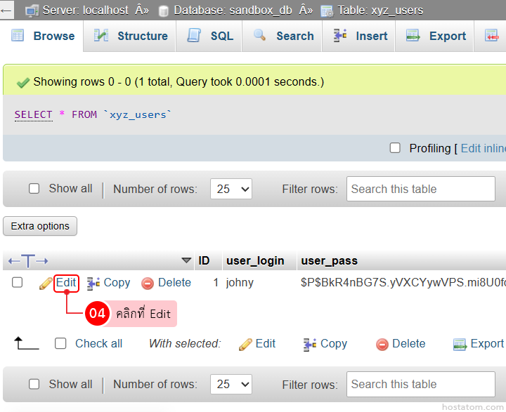 วิธีเปลี่ยนรหัสผ่าน WordPress ใน phpMyAdmin