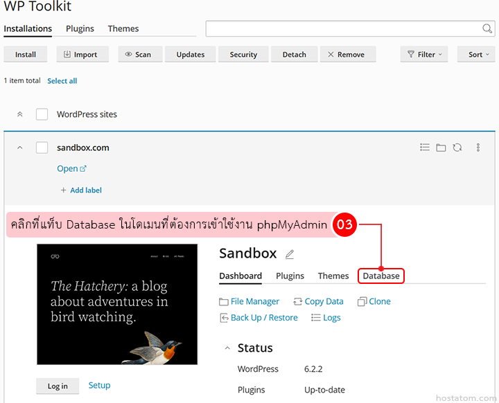 เข้าใช้งาน phpMyAdmin จากหน้า WP Toolkit