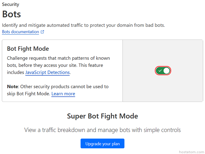 เมื่อเปิดใช้งาน Bot Fight Mode แล้วตรวจพบบอทที่ไม่ประสงค์ดี ระบบจะมีการดำเนินการดังต่อไปนี้
