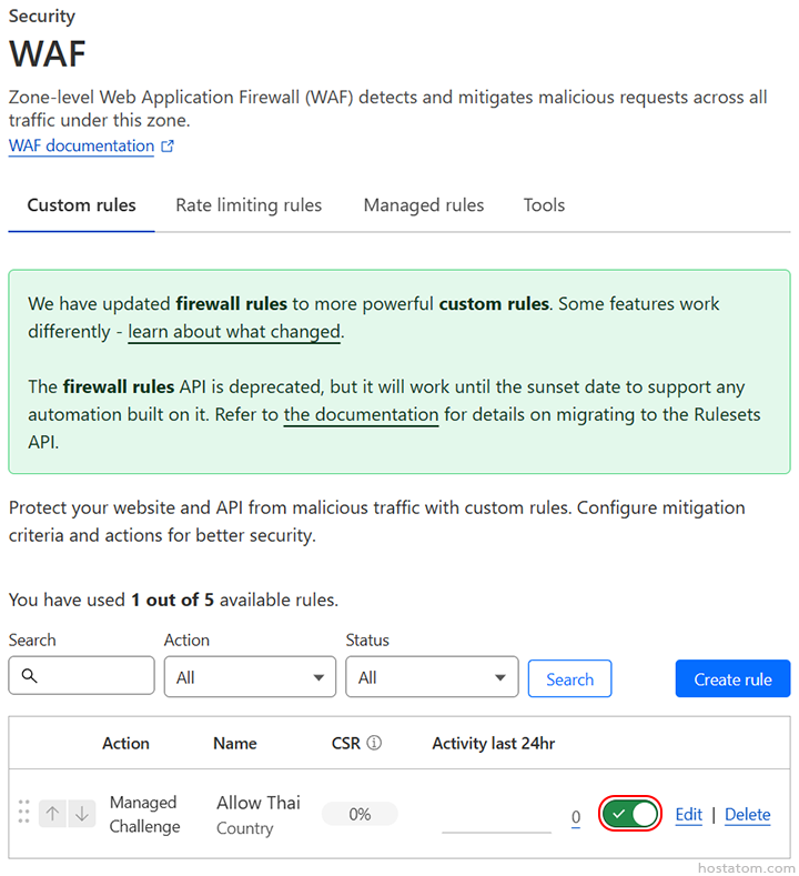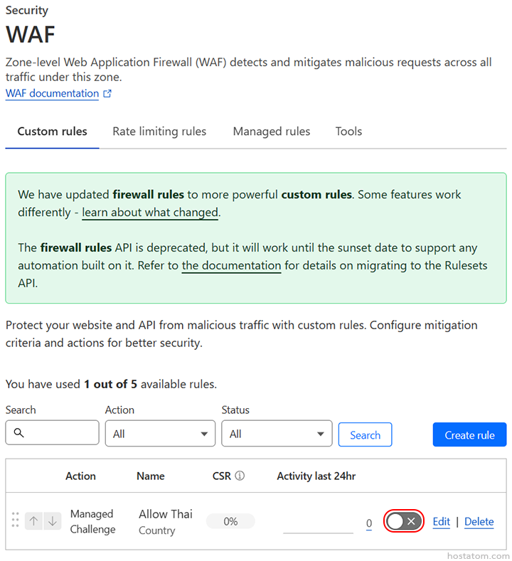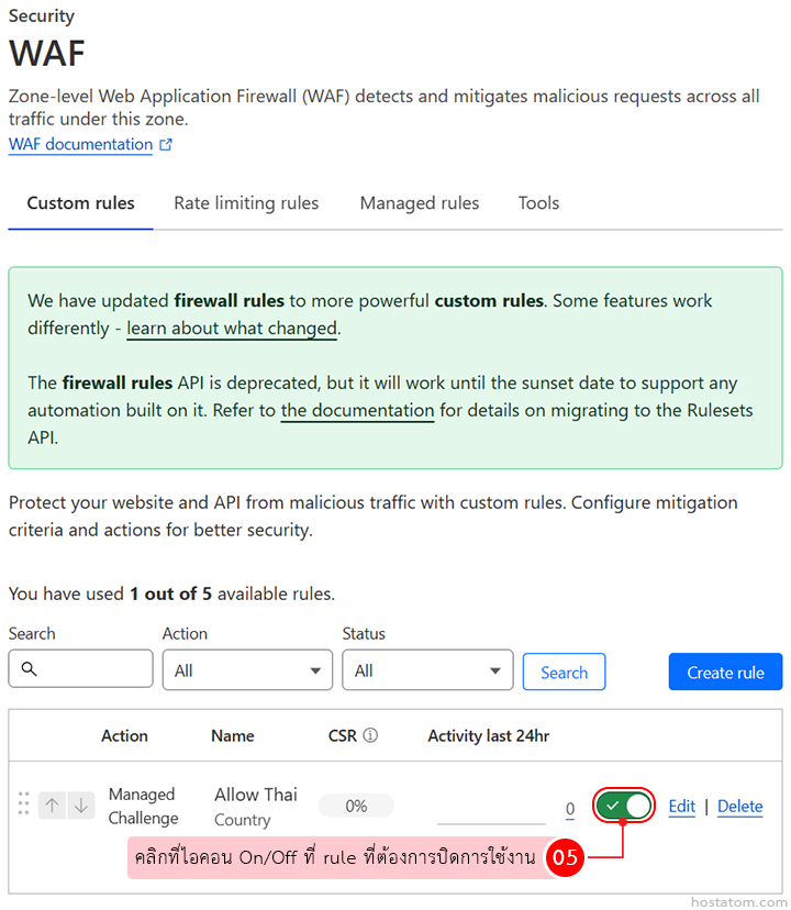 วิธีเปิด/ปิดการใช้งาน rule ใน Cloudflare
