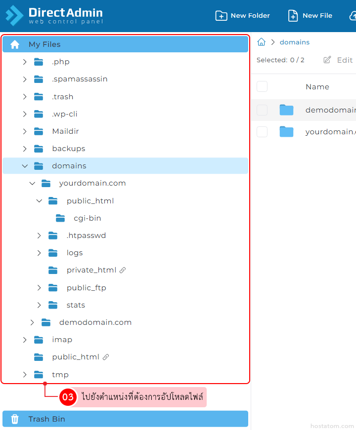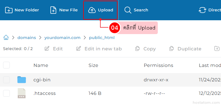เพียงเท่านี้คุณก็สามารถอัปโหลดไฟล์ขึ้นเว็บไซต์ผ่าน File Manager ใน DirectAdmin ได้อย่างง่ายดาย และหากไฟล์มีขนาดใหญ่ หรือจำเป็นต้องอัปโหลดหลาย ๆ ไฟล์พร้อมกัน การใช้งานผ่าน FTP ก็จะช่วยให้สะดวกยิ่งขึ้น