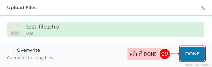 รอระบบอัปโหลดไฟล์จนเสร็จ โดยเมื่อไฟล์ดังกล่าวอัปโหลดเรียบร้อยแล้ว ให้คลิกที่ DONE เพื่อปิดหน้าต่างอัปโหลดไฟล์