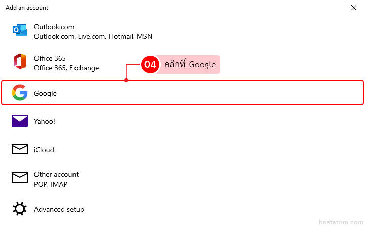 สำหรับผู้ที่ใช้งานอีเมลผ่านแอป Mail บน Windows สามารถเพิ่มบัญชีอีเมล Google ได้ตามขั้นตอนต่อไปนี้