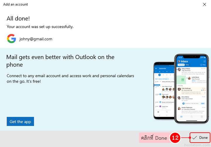 ระบบจะแจ้งว่าได้ดำเนินการเพิ่มบัญชีอีเมลดังกล่าวแล้ว ให้คลิกที่ Done