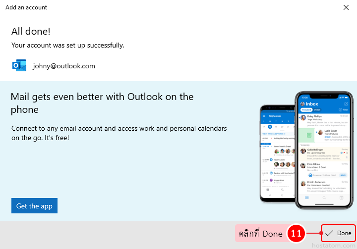 ระบบจะแจ้งว่าได้ดำเนินการเพิ่มบัญชีอีเมลดังกล่าวแล้ว ให้คลิกที่ Done