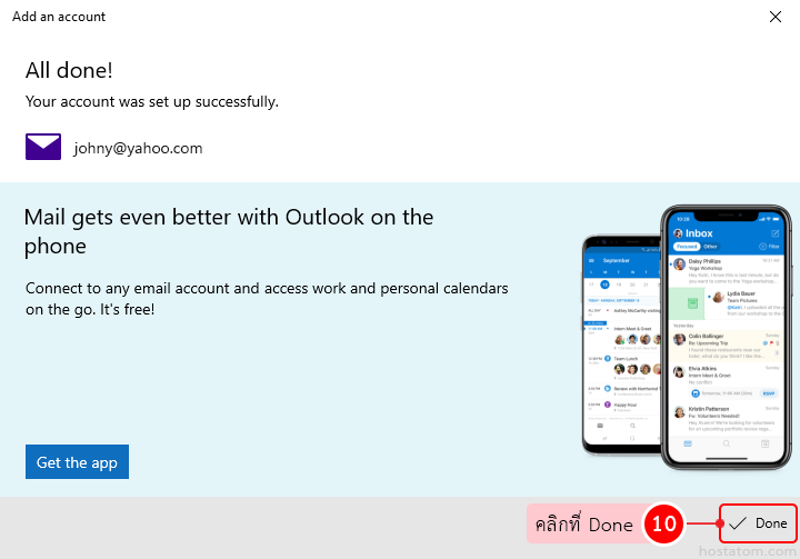 ระบบจะแจ้งว่าได้ดำเนินการเพิ่มบัญชีอีเมลดังกล่าวแล้ว ใคลิกที่ Done