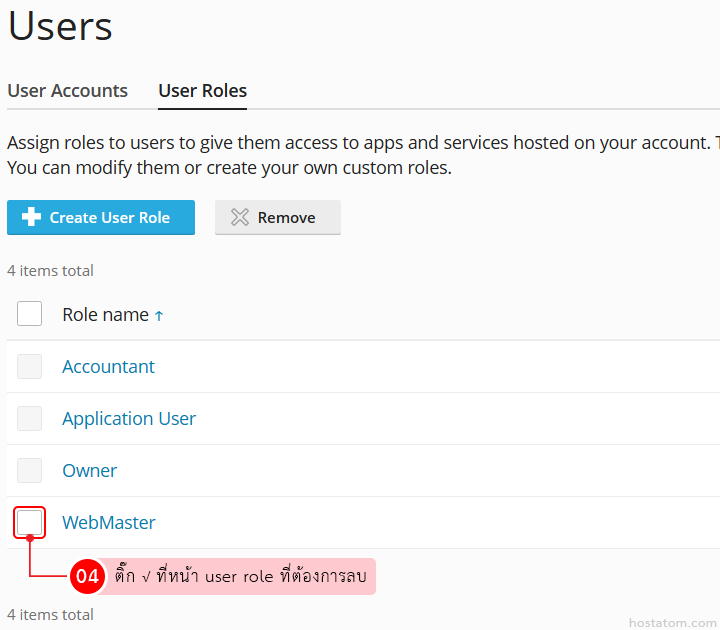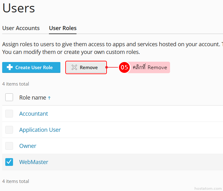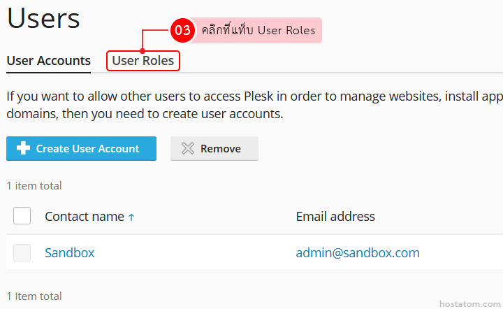 สำหรับผู้ที่ใช้ control panel ของ Plesk สามารถลบ user role ที่ไม่ได้ใช้งานออกได้ตามขั้นตอนต่อไปนี้