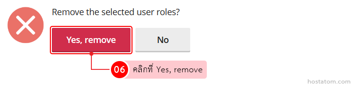 ระบบจะแสดงหน้าต่างยืนยันการลบ user role ที่เลือกขึ้นมา ให้คลิกที่ Yes, remove
