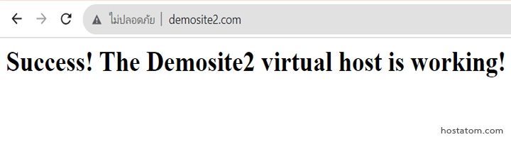 เมื่อเรียบร้อยแล้ว สามารถทดสอบได้ด้วยการพิมพ์ชื่อโดเมนของคุณ ในที่นี่ทางเราใช้ชื่อว่า demosite2.com หากปรากฎข้อความดังรูป ถือว่าตั้งค่าเรียบร้อยแล้ว