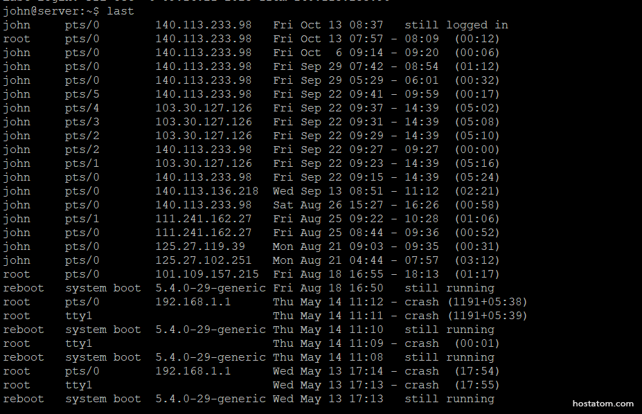 ปกติแล้ว เรามักจะให้ความสนใจในการเข้าสู่ระบบครั้งล่าสุดเท่านั้น โดยสามารถตรวจสอบได้จากการใช้คำสั่ง last