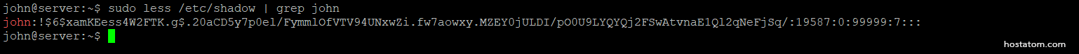 sudo less /etc/shadow | grep john