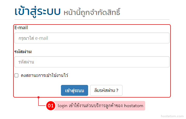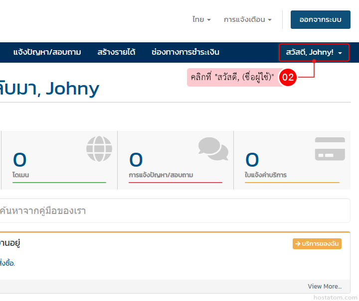 เริ่มจาก login เข้าใช้งานส่วนบริการลูกค้าของ hostatom