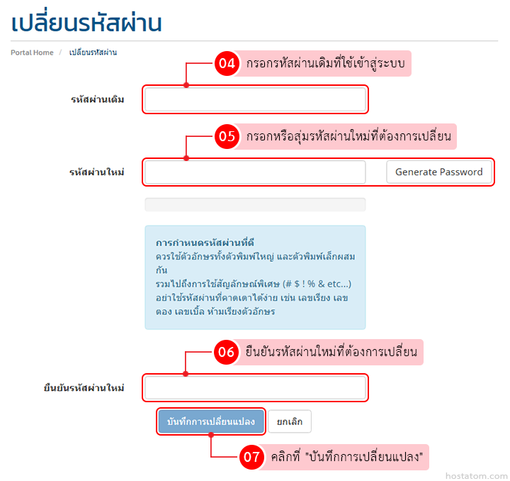 Home Tips & Tricks วิธีเปลี่ยนรหัสผ่านสำหรับ login ส่วนบริการลูกค้าของ hostatom