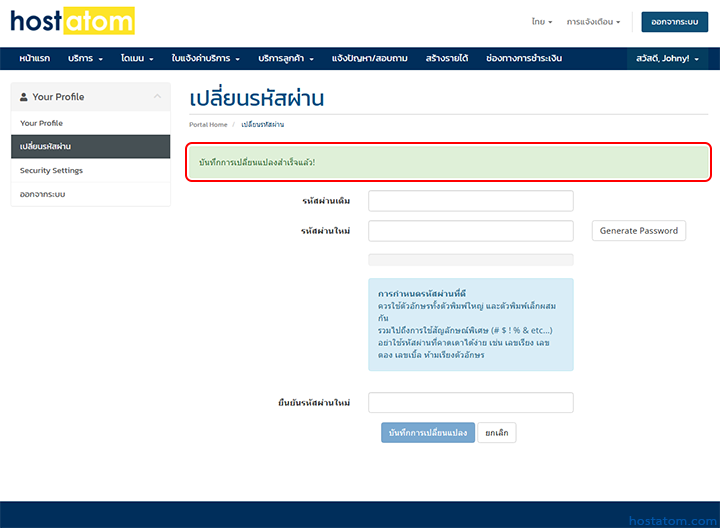 วิธีเปลี่ยนรหัสผ่านสำหรับ login ส่วนบริการลูกค้าของ hostatom