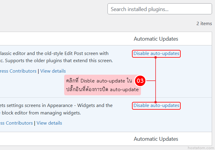 คลิกที่ Disable auto-updates ที่ปลั๊กอินที่ต้องการปิด auto-update