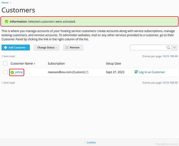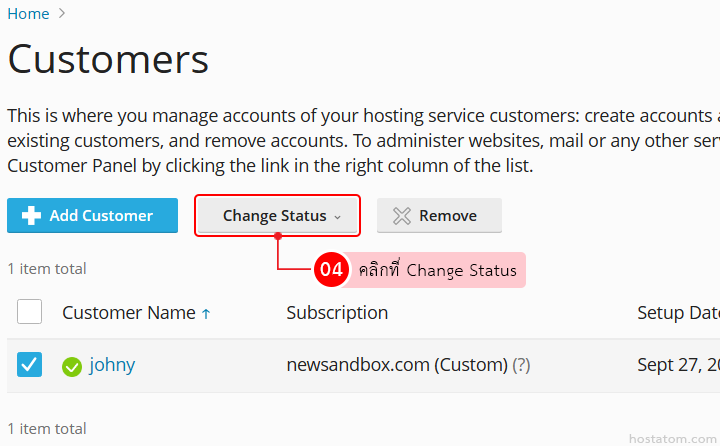 วิธีเปิดใช้งานบัญชี customer ใน Plesk