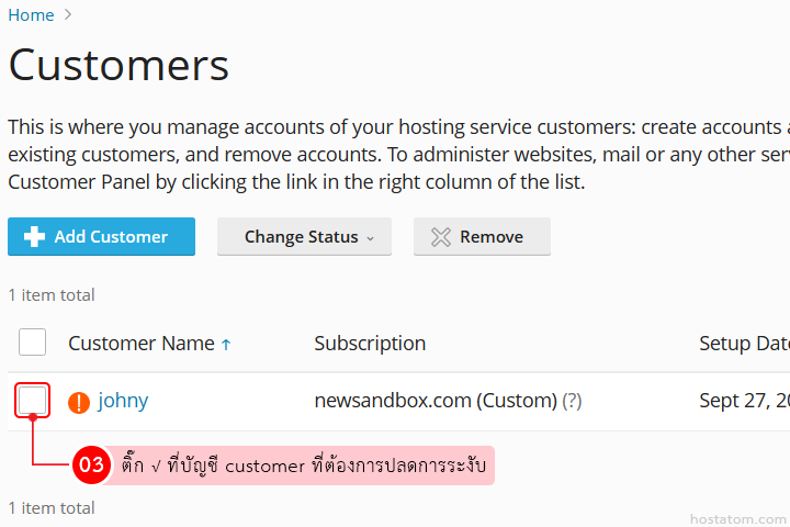 ติ๊กถูกที่บัญชี customer ที่ต้องการปลดการระงับ