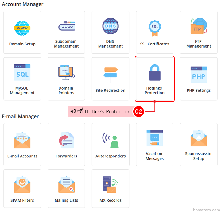 คลิกที่ Hotlinks Protection ในหมวด Account Manager