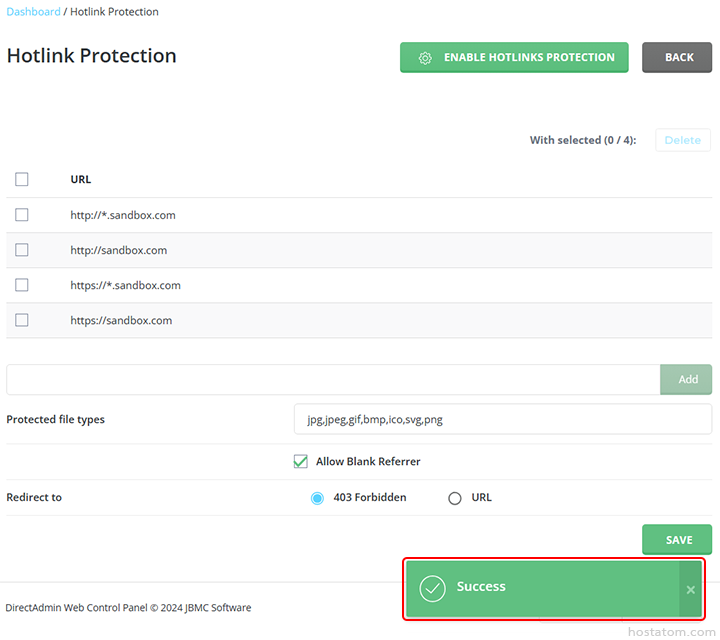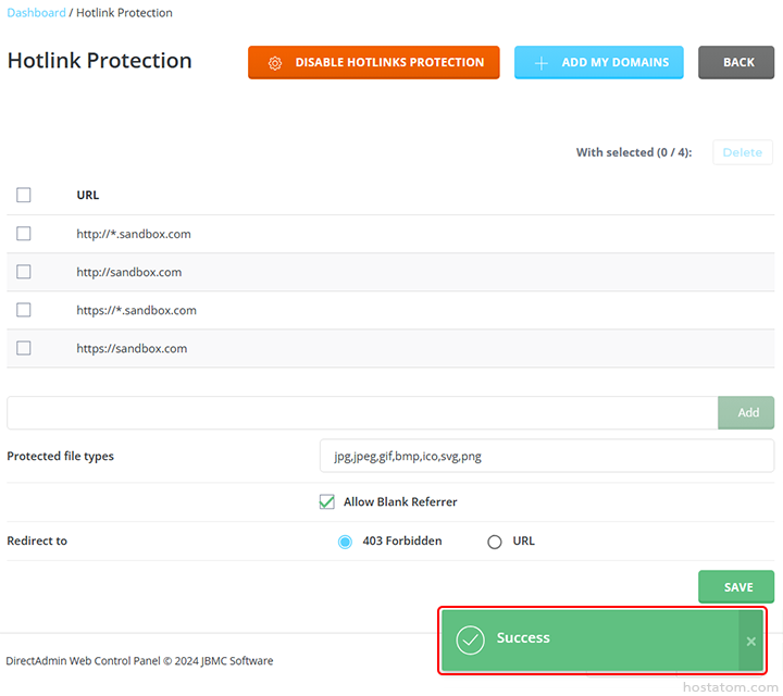 ระบบจะแจ้งว่าได้เปิดใช้งาน hotlink protection แล้ว