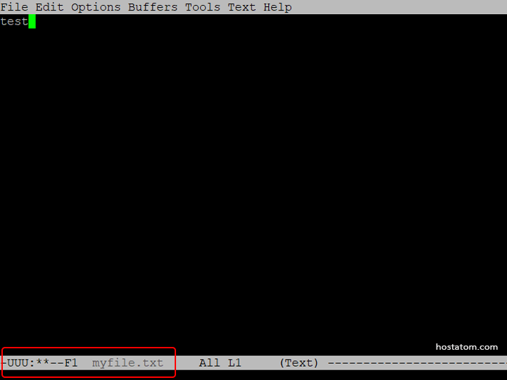 สุดท้ายนี้ จะมีช่องว่างบรรทัดเดียวอยู่หลังแถบสถานะที่หน้าจอสิ้นสุด ในตัวอย่างนี้ แสดงข้อความ “ไฟล์ใหม่” บริเวณนี้เรียกว่า buffer ขนาดเล็ก Emacs เป็นเครื่องมือที่ขับเคลื่อนด้วยคำสั่งและมินิ buffer เป็นจุดโต้ตอบหลักของเรา นี่คือจุดที่ Emacs แจ้งให้คุณป้อนคำสั่งและแสดงผลลัพธ์