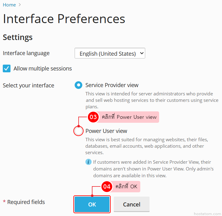 คลิกที่ Power User view ในหัวข้อ Select your interface