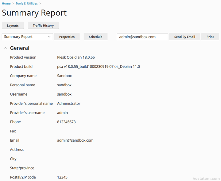 Summary report resources user subscription reseller Plesk