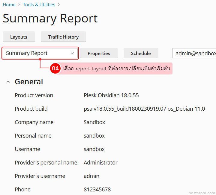 สำหรับผู้ที่ใช้งาน control panel ของ Plesk ในระดับ reseller สามารถเลือกเปลี่ยน report layout อื่นเป็นค่าเริ่มต้นได้ตามขั้นตอนต่อไปนี้