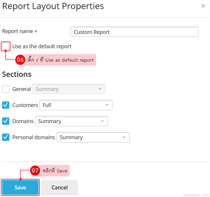 ติ๊กถูกที่ Use as default report จากนั้นคลิกที่ Save