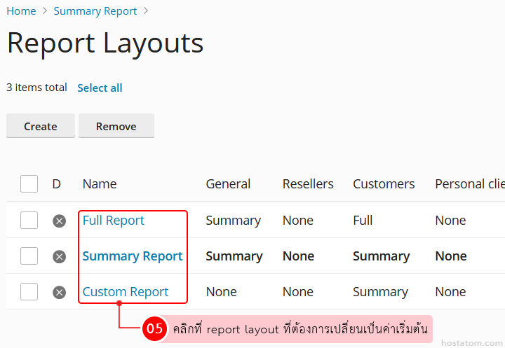 เลือก report layout ที่ต้องการเปลี่ยนเป็นค่าเริ่มต้น