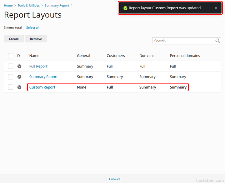 ระบบจะแจ้งว่าได้อัปเดตข้อมูลของ report layout ดังกล่าวแล้ว