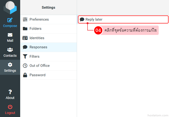 สำหรับผู้ที่ใช้งานบริการอีเมลของ Roundcube Webmail สามารถแก้ไขชุดข้อความสำเร็จรูปที่สร้างไว้ได้ตามขั้นตอนต่อไปนี้