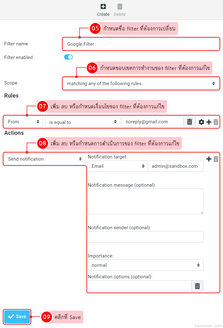 กำหนดข้อมูลของ filter ที่ต้องการแก้ไข เมื่อเสร็จแล้วให้คลิกที่ Save