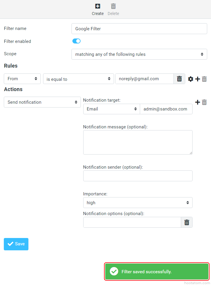 ระบบจะแจ้งว่าได้บันทึกการตั้งค่าของ filter ดังกล่าวแล้ว