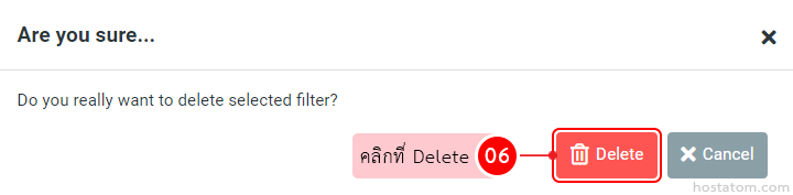 ระบบจะแสดงหน้าต่างยืนยันการลบ filter ที่เลือกขึ้นมา ให้คลิกที่ Delete