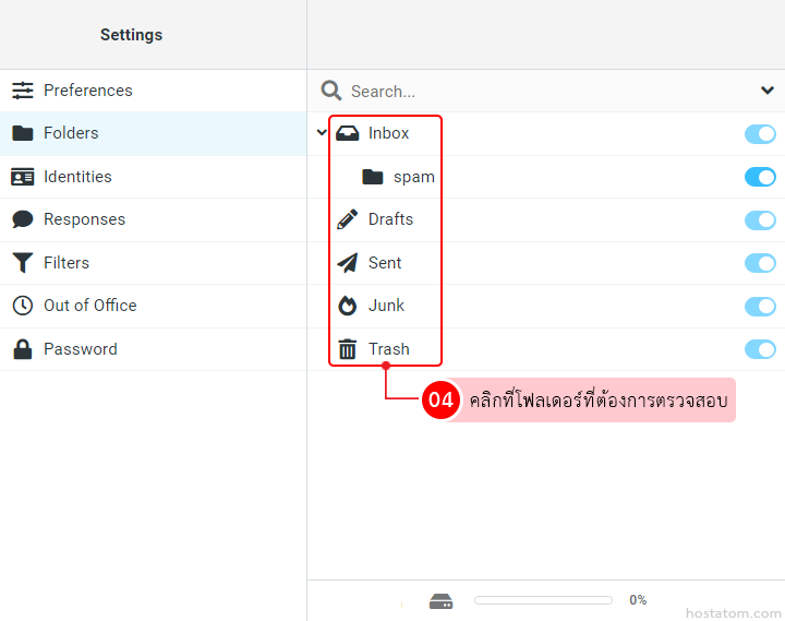 สำหรับผู้ที่ใช้งานบริการอีเมลของ Roundcube Webmail สามารถตรวจสอบจำนวนและขนาดข้อความของโฟลเดอร์ที่มีอยู่ได้ตามขั้นตอนต่อไปนี้