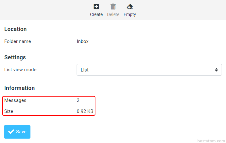 ระบบจะแสดงจำนวนข้อความที่มีอยู่ในโฟลเดอร์ (ในหัวข้อ Messages) และขนาดของโฟลเดอร์