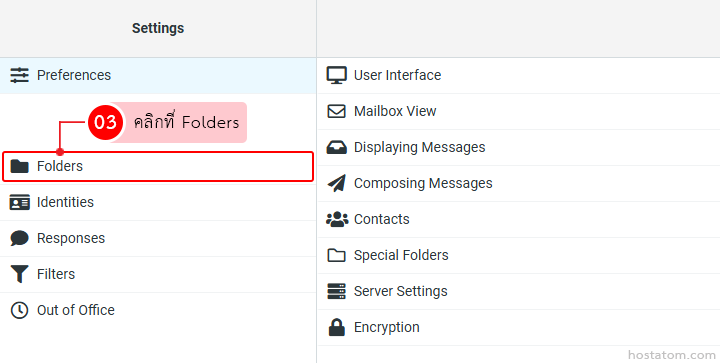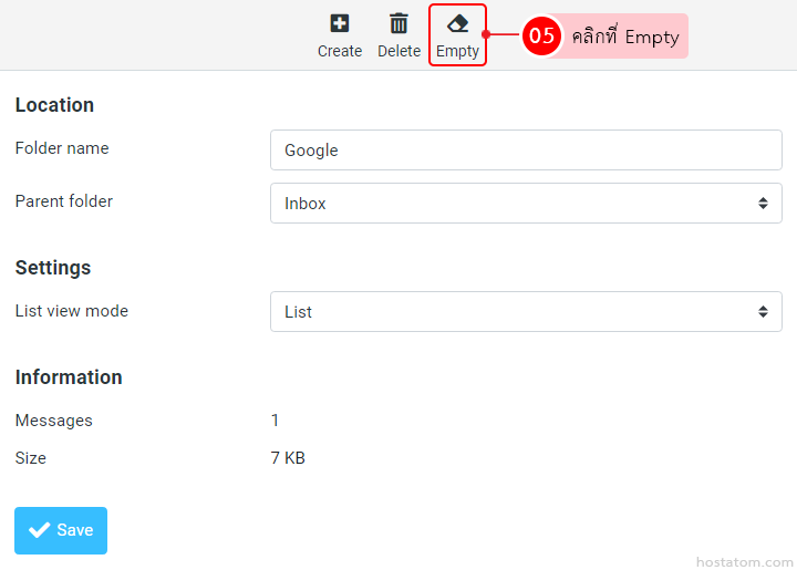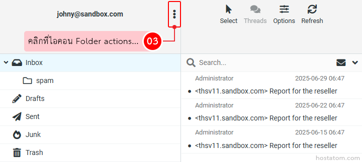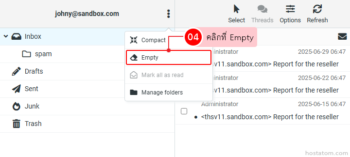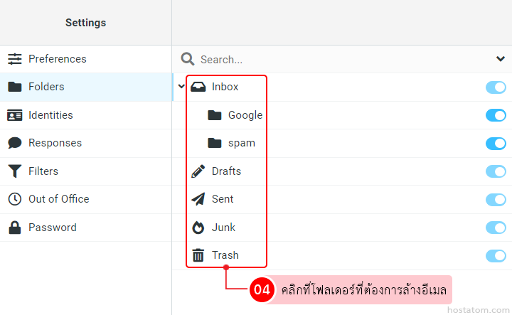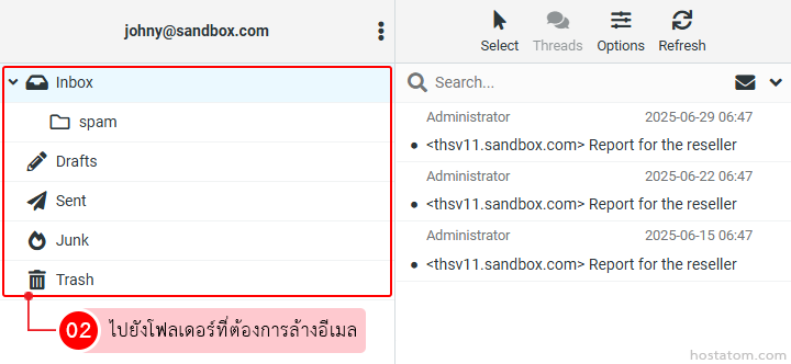 คลิกที่โฟลเดอร์ที่ต้องการล้างอีเมล
