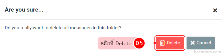 ระบบจะแสดงหน้าต่างยืนยันการล้างอีเมลขึ้นมา ให้คลิกที่ Delete