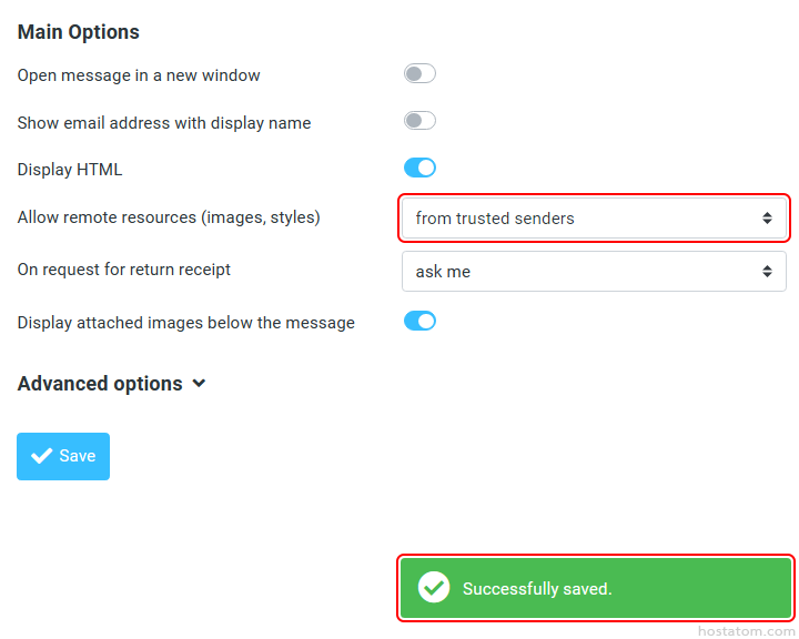 - from trusted senders – อนุญาตให้สามารถ remote รูปภาพ/สไตล์ได้จากผู้ส่งที่เชื่อถือได้
