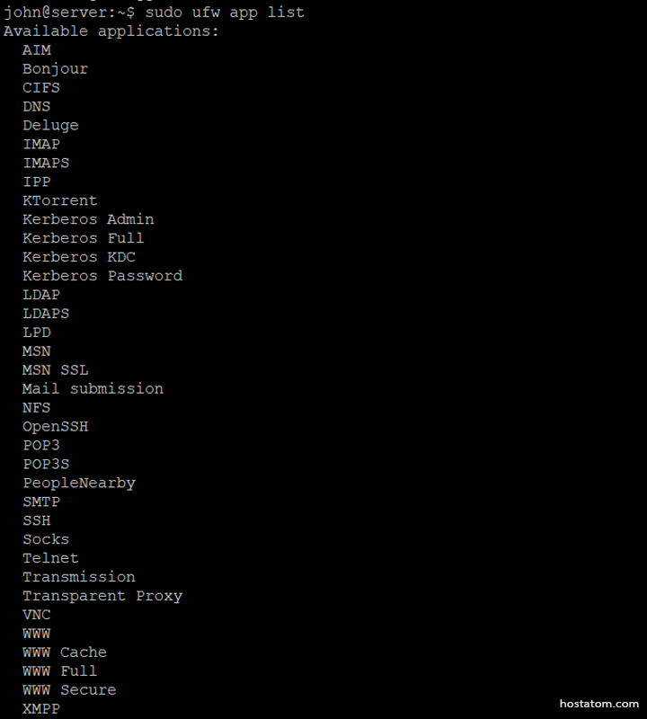 sudo ufw app list