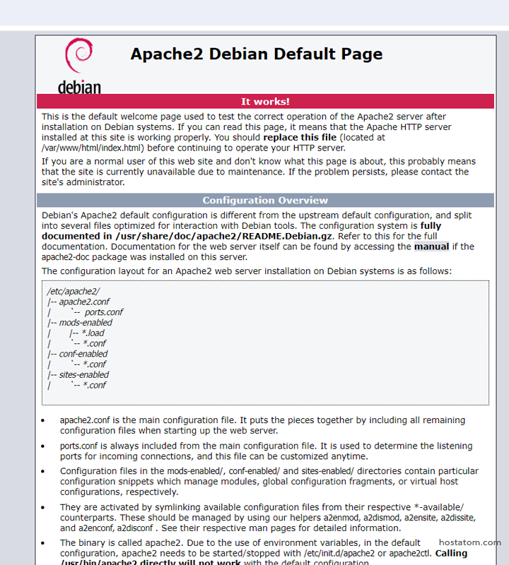 เมื่อสิ้นสุดกระบวนการติดตั้ง Debian 10 จะเริ่ม Apache เว็บเซิร์ฟเวอร์ควรเปิดใช้งานแล้วโดยการพิมพ์คำสั่งดังต่อไปนี้