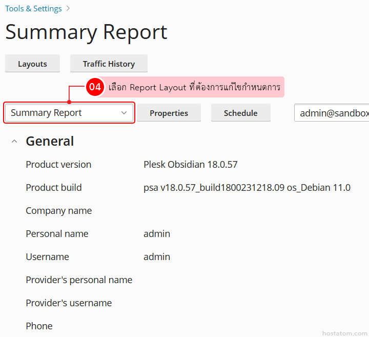 Home Plesk Admin Level วิธีแก้ไขกำหนดการส่งรายงานการใช้งานทรัพยากรสำหรับ admin ใน Plesk