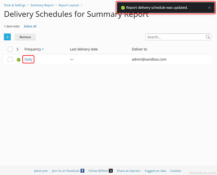 วิธีแก้ไขกำหนดการส่งรายงานการใช้งานทรัพยากรสำหรับ admin ใน Plesk