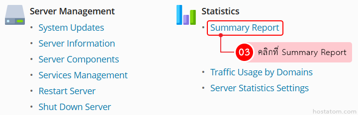 สำหรับผู้ที่ใช้งาน control panel ของ Plesk ในระดับ admin สามารถเลือกปิดการใช้งานกำหนดการส่งรายงานการใช้งานทรัพยากรได้ตามขั้นตอนต่อไปนี้