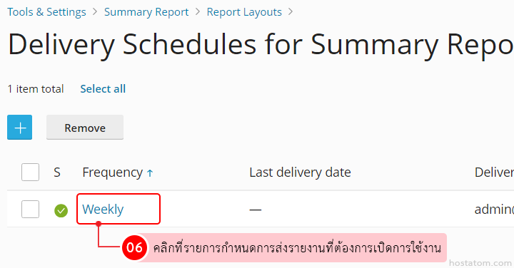 คลิกที่รายการกำหนดการส่งรายงานที่ต้องการเปิด