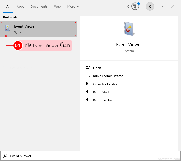 เริ่มจากเปิด Event Viewer ขึ้นมา