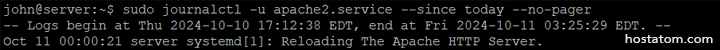 sudo journalctl -u apache2.service --since today --no-pager