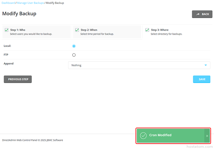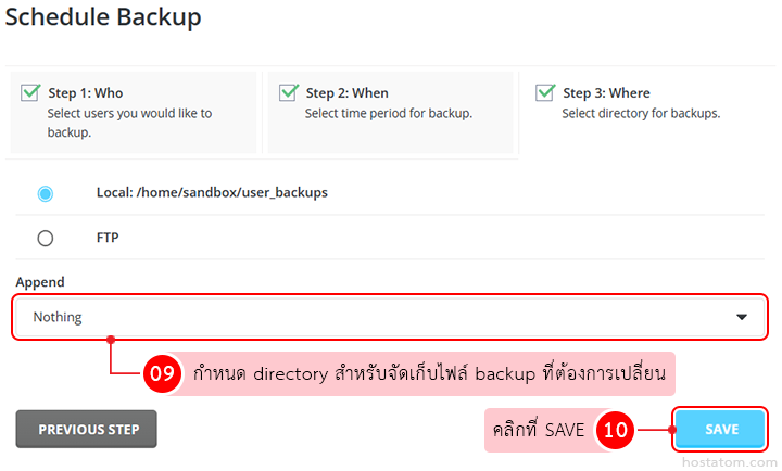 กำหนด directory สำหรับจัดเก็บไฟล์ backup ที่ต้องการเปลี่ยน จากนั้นคลิกที่ SAVE