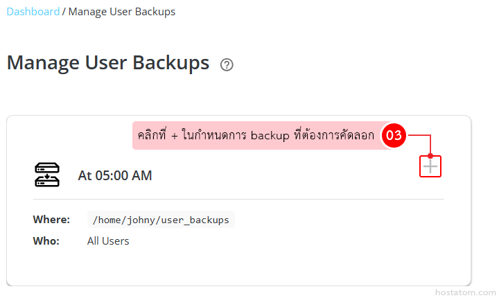 คลิกที่ + ในกำหนดการ backup ที่ต้องการแก้ไข